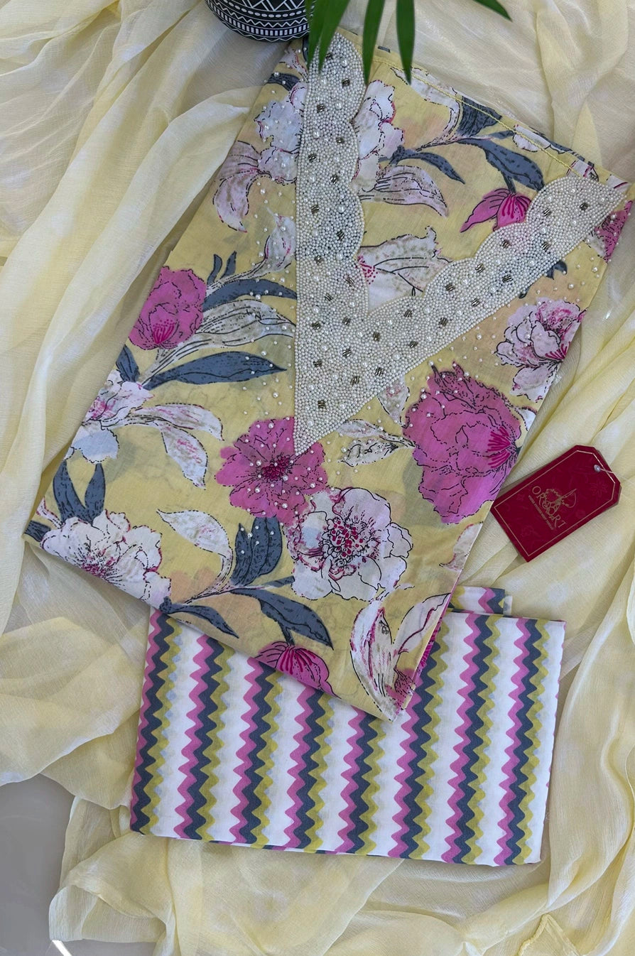| Content | Unstitched 3-piece set – Kurta, Dupatta and Bottom |